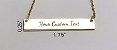 Elegance meets personalization with our Gold Customized Horizontal Bar Necklace. Crafted from durable stainless steel, this necklace features a sleek horizontal bar pendant that can be engraved with your choice of text. Whether it’s a special date, a meaningful word, or a loved one’s name, this necklace allows you to carry your cherished memories close to your heart. The warm gold finish adds a touch of sophistication, making it a perfect gift for yourself or someone special.